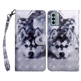 Θήκη για Nokia 5.3 με 3D σχέδιο ζωγραφικής, πολύχρωμη, οριζόντια αναδίπλωση από δερματίνη PU με βάση στήριξης, θήκες για κάρτες, πορτοφόλι & κορδόνι (Husky)