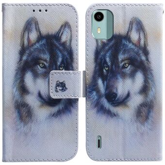 Θήκη τηλεφώνου από δέρμα με σχέδιο και αναδιπλούμενο καπάκι για Nokia C12 (Λευκός Λύκος)