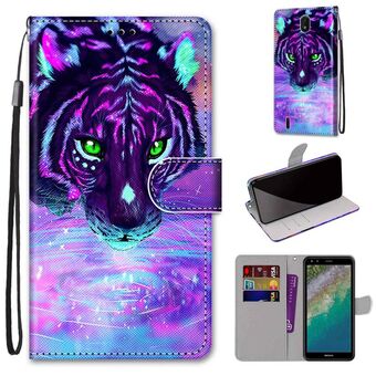 Θήκη τηλεφώνου δερμάτινη για Nokia C01 Plus με σχέδιο σταυρωτής υφής, οριζόντιο άνοιγμα, με βάση στήριξης & θήκες για κάρτες & πορτοφόλι & κορδόνι (Τίγρης που πίνει νερό)