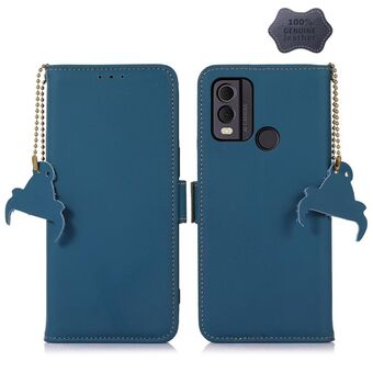 Θήκη τηλεφώνου από γνήσιο δέρμα με μαγνητικό κλείσιμο και προστασία RFID για Nokia C12 4G (Μπλε)
