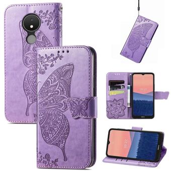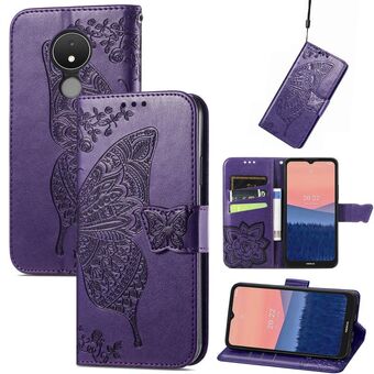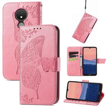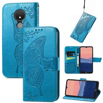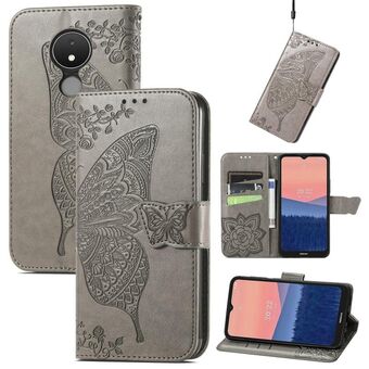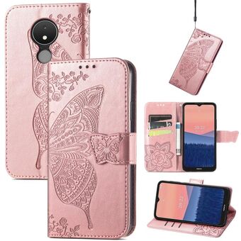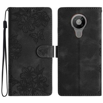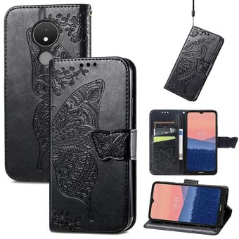 Θήκη τηλεφώνου από δέρμα με ανάγλυφο σχέδιο πεταλούδας και λουλουδιών για Nokia C21 (Μαύρο)