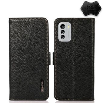 Θήκη τηλεφώνου με μαγνητικό κλείσιμο και γνήσιο δέρμα Litchi για Nokia G60 5G KHAZNEH (Μαύρο)
