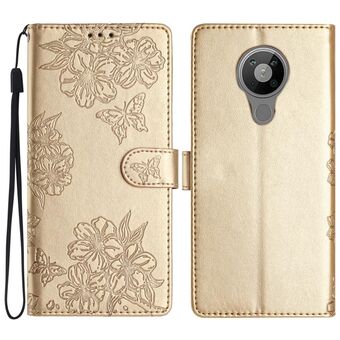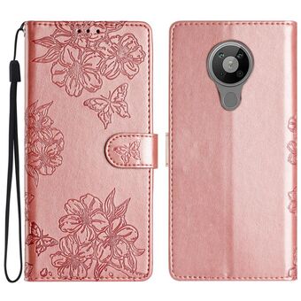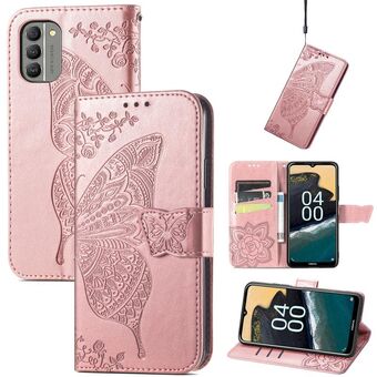 Θήκη τηλεφώνου από δέρμα με ανάγλυφο σχέδιο πεταλούδας και λουλουδιών για Nokia G400 (Χρυσό Ροζ)