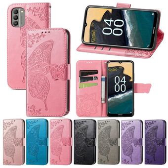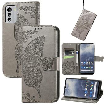 Θήκη δέρματος οριζόντιας αναδίπλωσης για Nokia G60 με ανάγλυφο σχέδιο πεταλούδας, λουλουδιών, βάση στήριξης / υποδοχή κάρτας / πορτοφόλι / κορδόνι (Μαύρο)