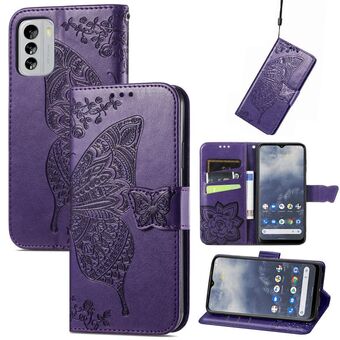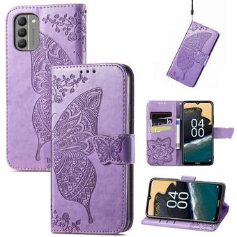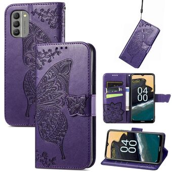 Θήκη τηλεφώνου από δέρμα με ανάγλυφο σχέδιο πεταλούδας και λουλουδιών για Nokia G400 (Λεβάντα)