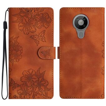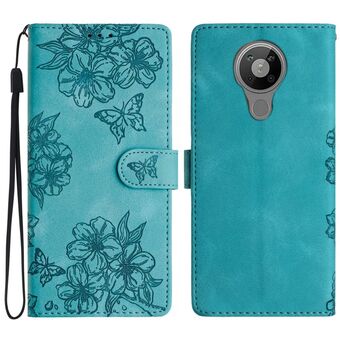 Θήκη τηλεφώνου Nokia 5.4 Cherry Blossom Butterfly Skin Feel Embossed PU (Κόκκινη)