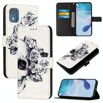Θήκη τηλεφώνου από δέρμα με τρισδιάστατη ζωγραφική και οριζόντια αναδίπλωση για Nokia C02 (Κρανίο)