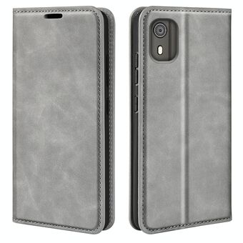 Για Nokia C02 Retro-skin Μαγνητική δερμάτινη θήκη τηλεφώνου αναρρόφησης (γκρι)
