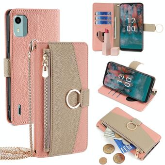Για το Nokia C12 Crossbody Litchi Υφή δερμάτινη θήκη τηλεφώνου (ροζ)
