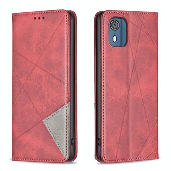 For Nokia C02 Rhombus Texture Magnetic Leather Phone Case(Red)
