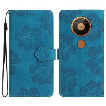 Για Nokia 5.3 λουλούδι ανάγλυφο μοτίβο δερμάτινη θήκη τηλεφώνου (μπλε)