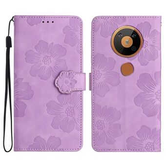 Για Nokia 5.3 λουλούδι ανάγλυφο μοτίβο δερμάτινη θήκη τηλεφώνου (μωβ)