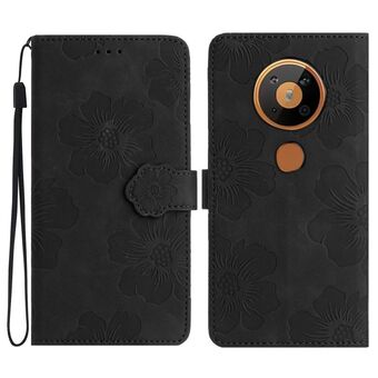 Για Nokia 5.3 λουλούδι ανάγλυφο μοτίβο δερμάτινη θήκη τηλεφώνου (μαύρο)