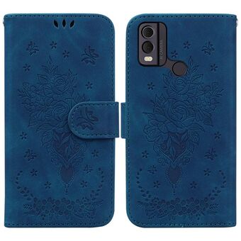 Για Nokia C22 Πεταλούδα Rose ανάγλυφη δερμάτινη θήκη τηλεφώνου (μπλε)