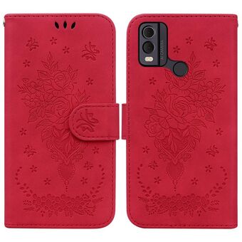 Για Nokia C22 Πεταλούδα Rose ανάγλυφη δερμάτινη θήκη τηλεφώνου (κόκκινο)