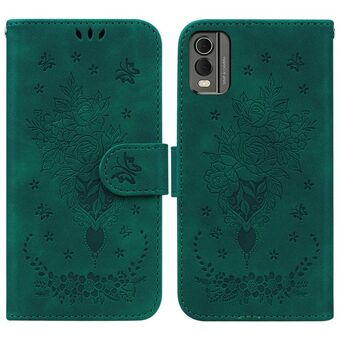 Για Nokia C22 Πεταλούδα Rose ανάγλυφη δερμάτινη θήκη τηλεφώνου (πράσινο)