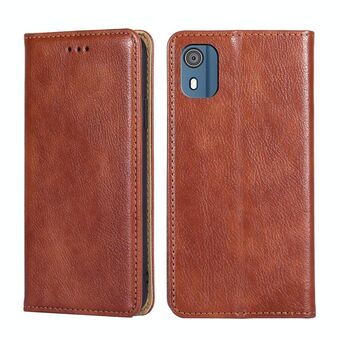 Για το Nokia C02 TA-1522 Γυαλιστερό λάδι στερεό χρώμα μαγνητικό δέρμα τηλέφωνο υπόθεση (καφέ)