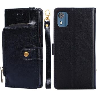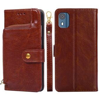 Για Nokia C02 TA-1522 φερμουάρ τσάντα δερμάτινη θήκη τηλεφώνου (καφέ)