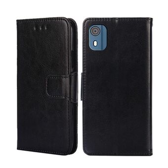 Για το Nokia C02 TA-1522 Γυαλιστερό λάδι στερεό χρώμα μαγνητική δερμάτινη θήκη τηλεφώνου (μαύρο)