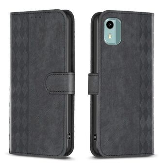 Για Nokia C12 καρό ανάγλυφη δερμάτινη θήκη τηλεφώνου (μαύρο)