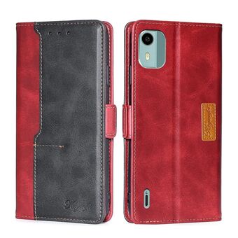 Για Nokia C22 Αντίθετο χρώμα πλευρά πόρπη δερμάτινη θήκη τηλεφώνου (μωβ + Rose Red)