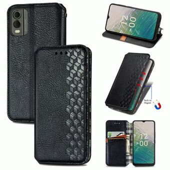 Για το Nokia C32 Cubic Grid Pressed μαγνητική δερμάτινη θήκη τηλεφώνου (μαύρο)