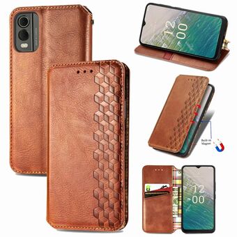 Για Nokia C32 Cubic Grid Πιεσμένο μαγνητικό δέρμα τηλέφωνο υπόθεση (καφέ)