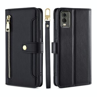 Για Nokia G22 φερμουάρ τσάντα δερμάτινη θήκη τηλεφώνου (μαύρο)