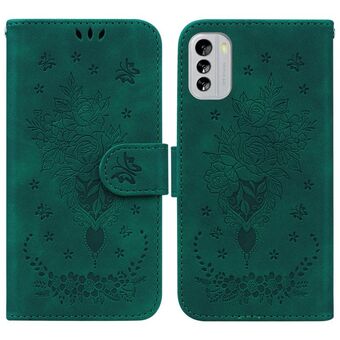 Για Nokia G60 Πεταλούδα Rose ανάγλυφο δέρμα υπόθεση τηλεφώνου (πράσινο)