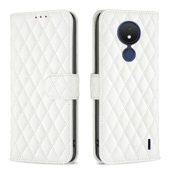 Για Nokia C21 Diamond Lattice πορτοφόλι δέρμα Flip υπόθεση τηλεφώνου (λευκό)