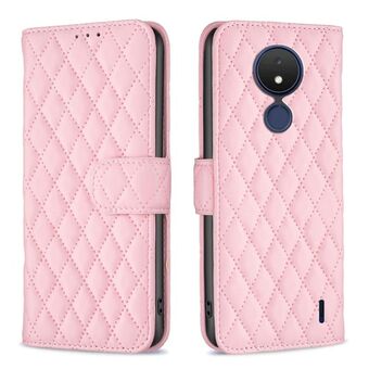 Για Nokia C21 Diamond Lattice πορτοφόλι δέρμα Flip υπόθεση τηλεφώνου (ροζ)
