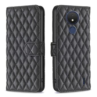 Για Nokia C21 Diamond Lattice πορτοφόλι δέρμα Flip υπόθεση τηλεφώνου (μαύρο)