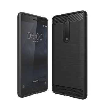 Για Nokia 5 βουρτσισμένο ανθρακονήματα υφή Shockproof TPU προστατευτική θήκη κάλυψης (μαύρο)