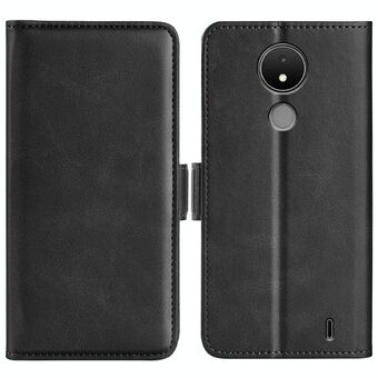 Για Nokia C21 Διπλής όψης μαγνητική πόρπη δερμάτινη θήκη τηλεφώνου (μαύρο)