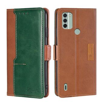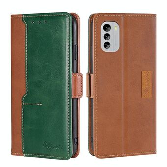 Για το Nokia G60 5G αντίθεση χρώμα πλευρά πόρπη δερμάτινη θήκη τηλεφώνου (ανοιχτό καφέ + πράσινο)