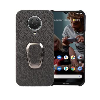 Για Nokia G20 Ring Holder Litchi Υφή γνήσιο δέρμα τηλέφωνο υπόθεση (μαύρο)