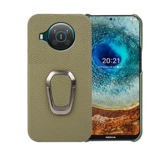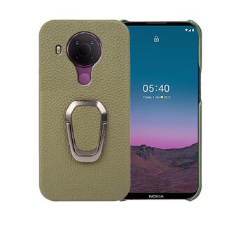 Για Nokia 5.4 Ring Holder Litchi Υφή γνήσιο δέρμα τηλέφωνο υπόθεση (πράσινο)