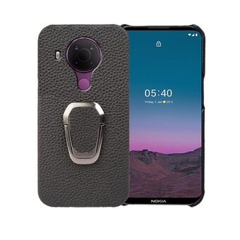 Για Nokia 5.4 Ring Holder Litchi Υφή γνήσιο δέρμα τηλέφωνο υπόθεση (μαύρο)
