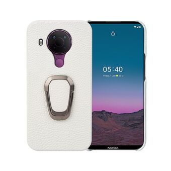 Για Nokia 5.4 Ring Holder Litchi Υφή γνήσιο δέρμα τηλέφωνο υπόθεση (λευκό)