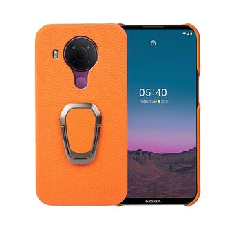 Για Nokia 5.4 Δακτύλιος κάτοχος Litchi Υφή γνήσιο δέρμα τηλέφωνο υπόθεση (καφέ)