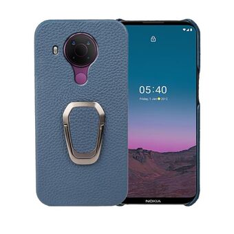 Για Nokia 5.4 Ring Holder Litchi Υφή γνήσιο δέρμα τηλέφωνο υπόθεση (μπλε)