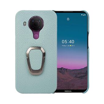 Για Nokia 5.4 Ring Holder Litchi Υφή γνήσιο δέρμα τηλέφωνο υπόθεση (Cyan)