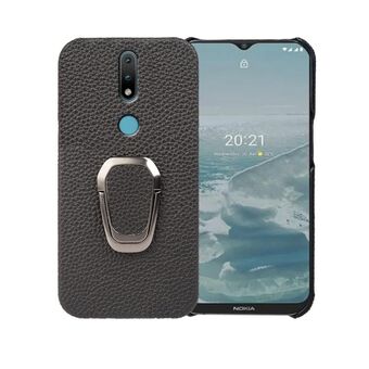 Για Nokia 2.4 Ring Holder Litchi Υφή γνήσιο δέρμα τηλέφωνο υπόθεση (μαύρο)