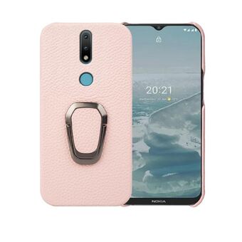 Για Nokia 2.4 Ring Holder Litchi Υφή γνήσιο δέρμα τηλέφωνο υπόθεση (ροζ)