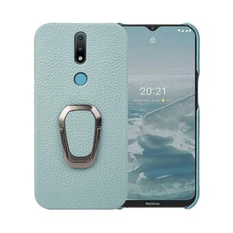 Για Nokia 2.4 Ring Holder Litchi Υφή γνήσιο δέρμα τηλέφωνο υπόθεση (Cyan)