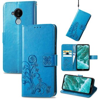 Για το Nokia G60 τετράφυλλο κούμπωμα ανάγλυφη δερμάτινη θήκη τηλεφώνου (μπλε)