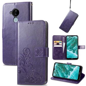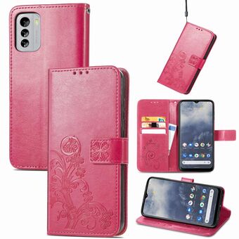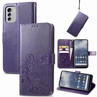 Για το Nokia G60 τετράφυλλο κούμπωμα ανάγλυφη δερμάτινη θήκη τηλεφώνου (μωβ)