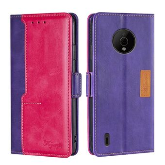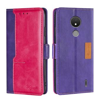 Για Nokia C21 Plus αντίθεση χρώμα πλευρά πόρπη δερμάτινη θήκη τηλεφώνου υπόθεση (μωβ + Rose Red)