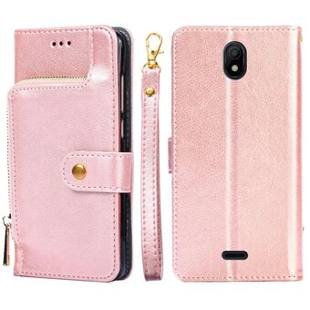 Για Nokia C200 φερμουάρ τσάντα δερμάτινη θήκη τηλεφώνου (ροζ χρυσό)
