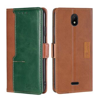 Για Nokia C01 Plus / C1 2nd Editon αντίθεση χρώμα πλευρά πόρπη δερμάτινη θήκη τηλεφώνου (ανοιχτό καφέ + πράσινο)